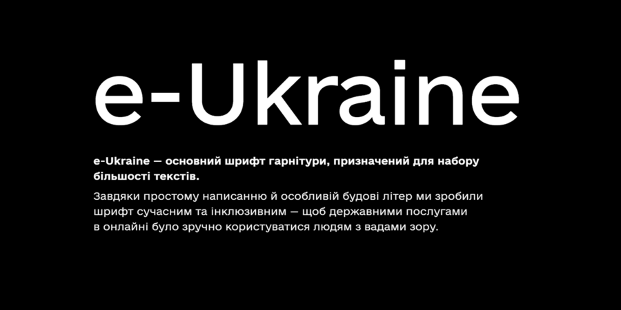 Гарнітура e-Ukraine – це «українська гельветика». Це шрифтове сімейство використовується усіма державними органами Україниі, воно стало основою візуального стилю держави онлайні.
