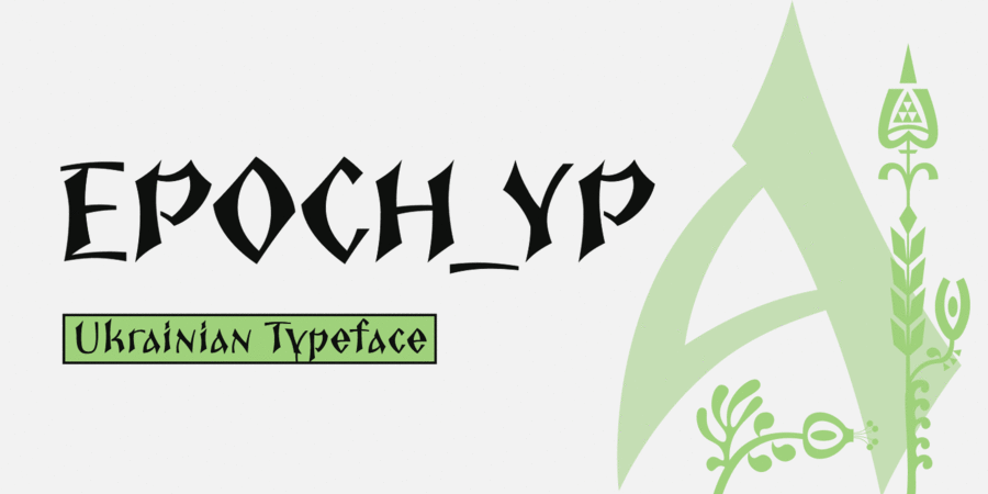 Епоха – це акцидентна гарнітура з динамічними формами, натхненна книжковою графікою художника Івана Плесканко та українськими шрифтовими традиціями ХХ століття. Шрифт поєднує декоративну виразність із функціональністю, завдяки чому може використовуватися в плакатах, обкладинках, етикетках і пакуванні, підкреслюючи українську культурну ідентичність дизайну.