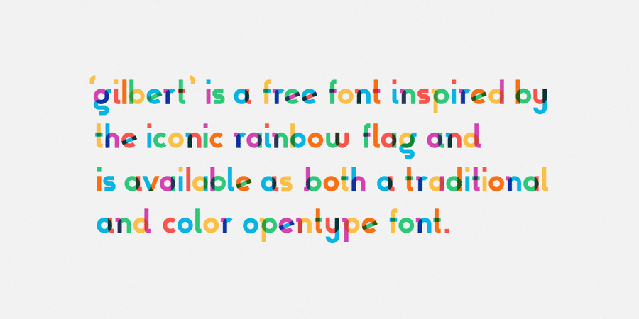 Шрифт Gilbert призначений для яскравих заголовків та гасел на банерах для мітингів і протестів. Демо-версія Gilbert доступна на сайті typewithpride.com у двох варіантах: стандартного векторного OpenType шрифту, який можна використовувати у будь-якій програмі та кольорового шрифту OpenType-SVG, який можна використовувати у Photoshop CC 2017.