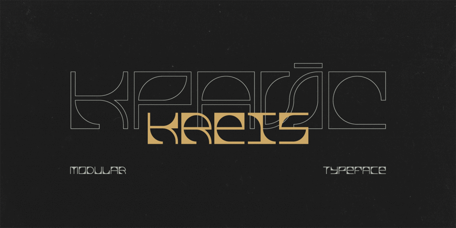 KREIS – справжній метамодерніст, створений Катериною Королевцевою. Це модульний акцидентний шрифт із сучасним різким характером, натхненний формою олдскульного CD-диска. Він складається з трьох простих модулів, які походять з квадрата та кола. Kreis – німецьке слово, що означає коло.
